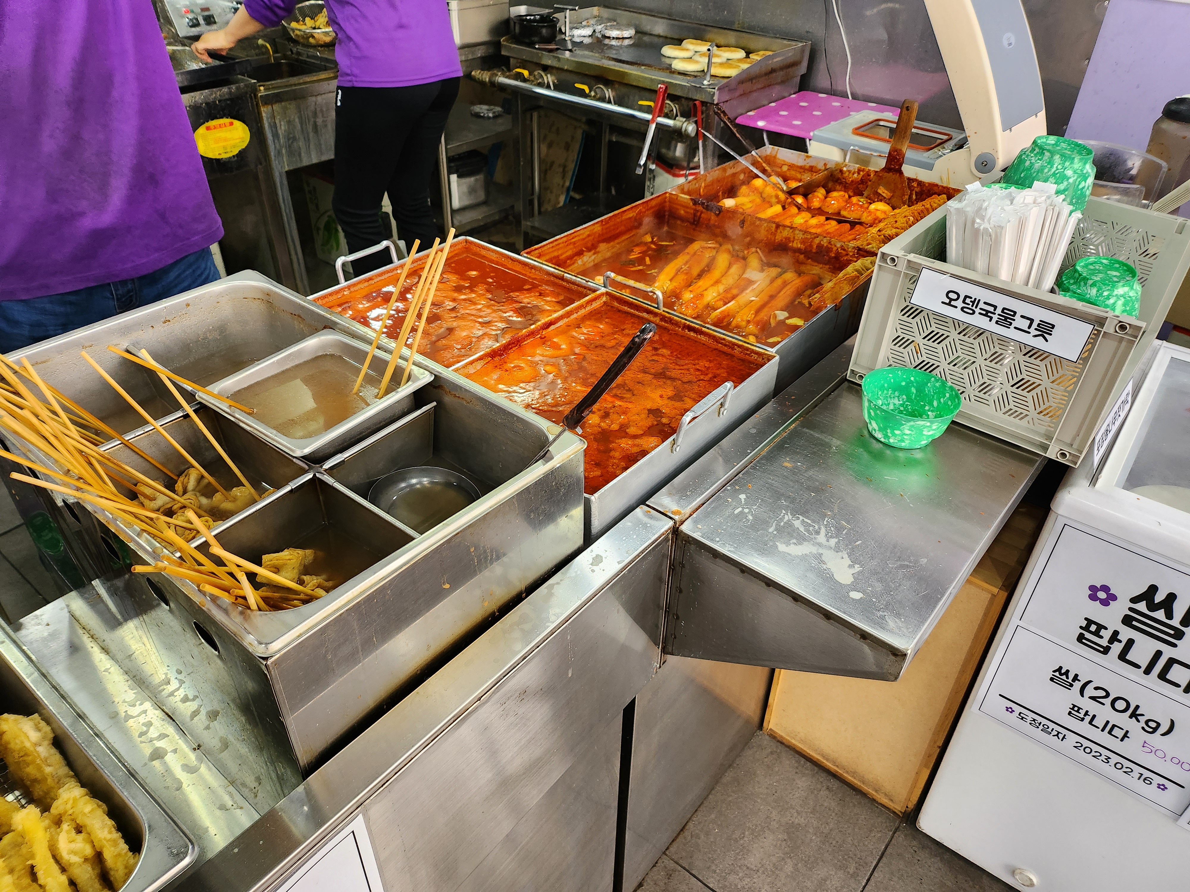 잘 튀겨진 튀김들과 어묵, 떡볶이, 호떡!